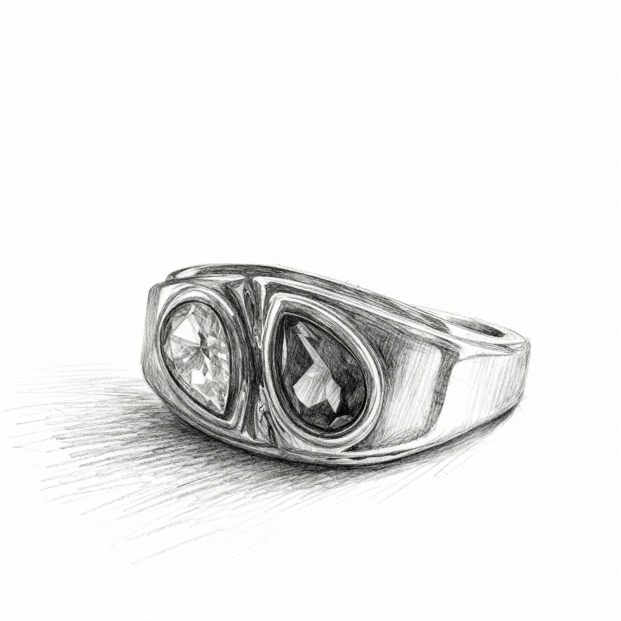 A gemstone signet ring is a timeless ring that features a prominent gemstone set into a classic signet design. Traditionally Signets rings are used to display family crests, Coat of arms or initials, these rings now combine elegance and personal style, allowing you to showcase a diamond, moissanite, sapphire, or other precious stone in a custom, handcrafted piece.
